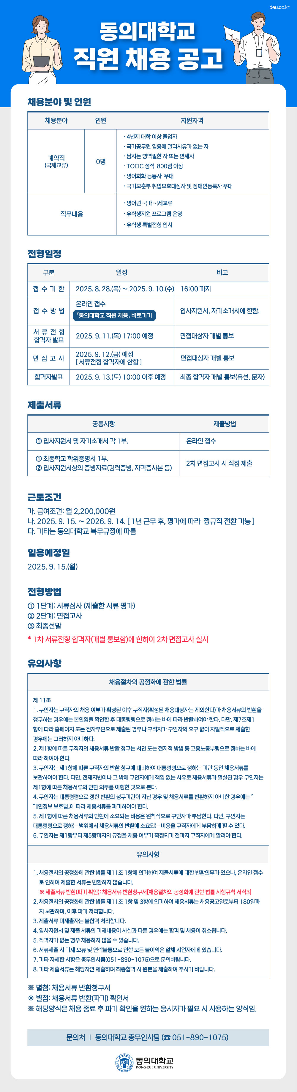 동의대학교 직원 채용 재공고 안내[국제교류분야]