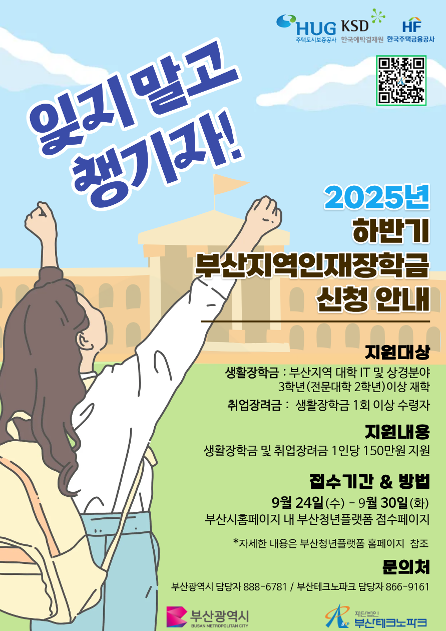 2025년 하반기 「부산지역인재 장학금」 신청 안내 (9.24~9.30) - IT 및 상경분야 (지원가능학과 해당)