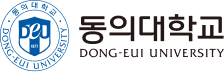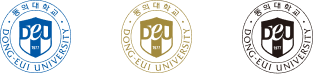 교표는 전체적으로 진리, 정의, 창의의 교육목표를 추구하며 전통과 최첨단이 공존하는 미래지향적인 동의대학교의 이미지를 형상화한 것으로, 중심에 있는 DeU는 Dong-eui University의 약자이다.